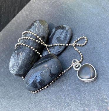 Contactez-moi et imaginons ensemble une pièce unique, sur mesure qui vous ressemble d’un design proche de celui qui vous plaît, jamais tout à fait le même en fonction du galet, du verre poli ou des chaînes vintage que je chine.